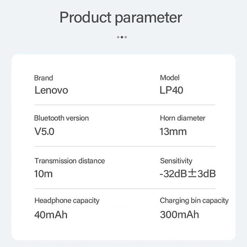 LP40 محصول شرکت لنوو که با کاهش 35 درصدی در اندازه و وزن 25 گرمی و باتری قدرت مند 300 میلی آمپر ساعت این هدفون بلوتوثی را روانه بازار کرده است. طراحی ارگونومیک این محصول به گونه ای است که هیچوقت احساس خستگی نخواهید کرد. هندزفری Lenovo LP40 دارای درایورهای 13 میلی متری است که ابعاد قابل توجهی دارند که کمک می کنند تا شما بتوانید به خوبی جزئیات صدا را شنیده و بیس و تفکیک صوت خوبی را تجربه کنید. این محصول دارای 2 گوشی است و هر گوشی دارای پنل لمسی جداگانه می باشد. اگر به دنبال هدفون بیسیم با کیفیت و کم حجم هستید. بدون شک LP40 گزینه انتخابی شما خواهد بود.